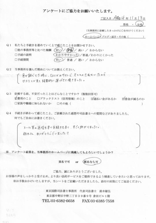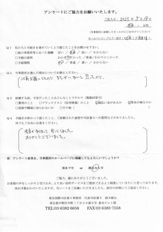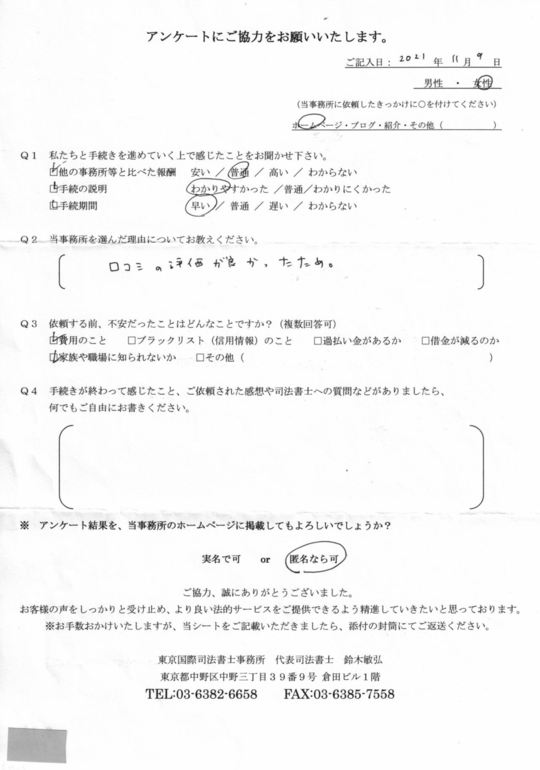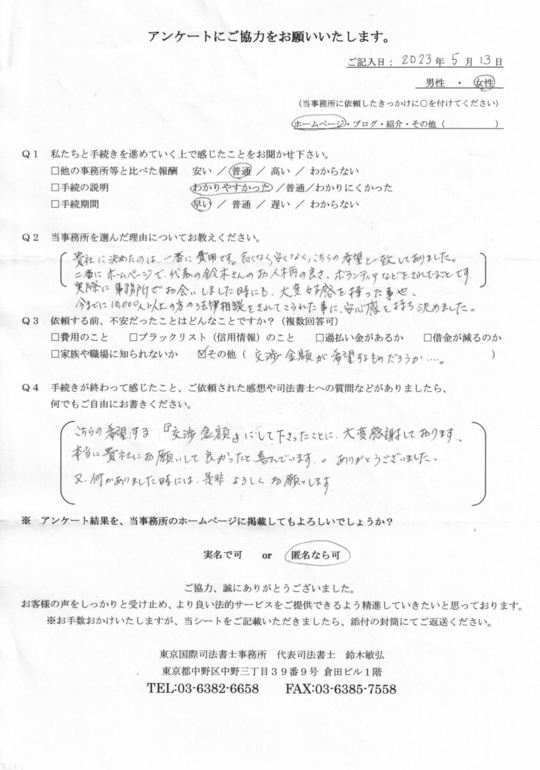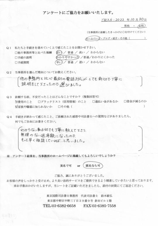 わからない事は何でも丁寧に教えて下さり、無理のない返済額になったので、もっと早く