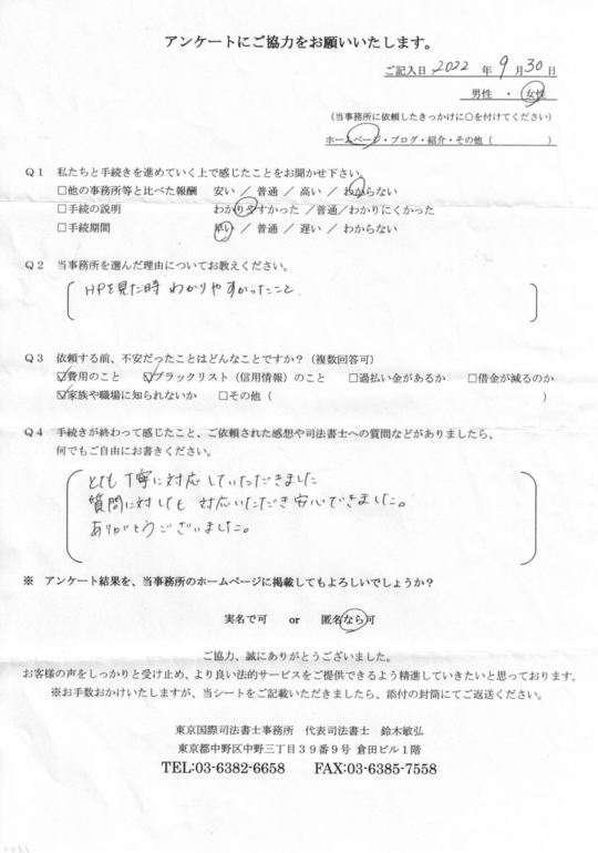 他の事務と比べ最初の電話対応がとても親切で丁寧に説明をして下さったので選びました。