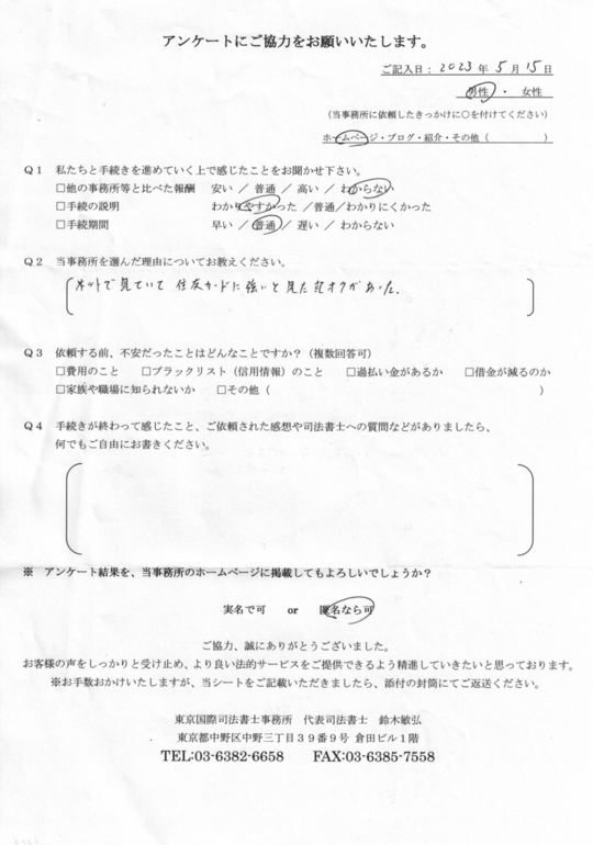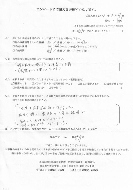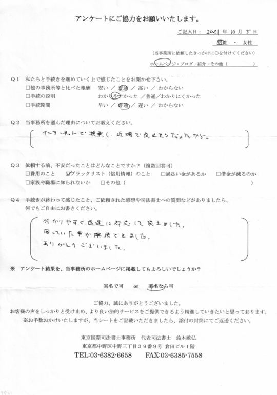 回答:費用のこと、ブラックリスト(信用情報)のこと